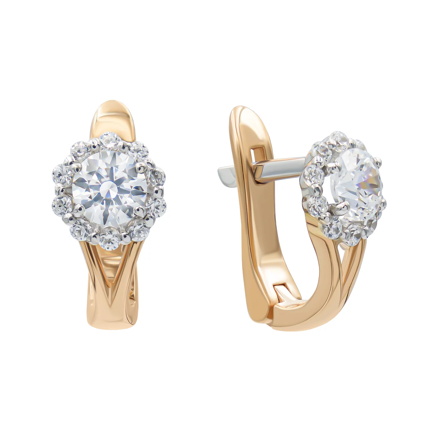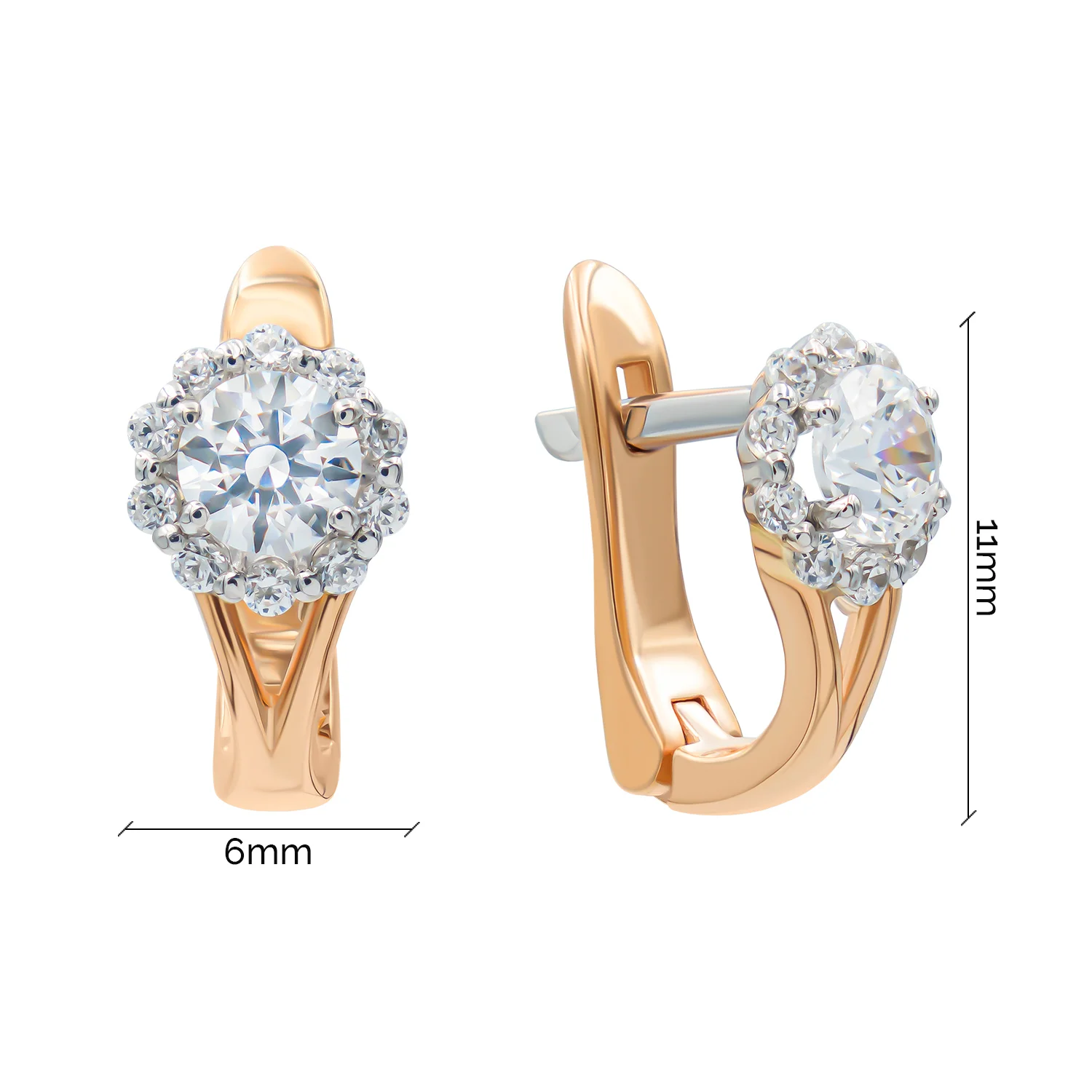Элегантные сережки из красного золота с дорожкой из фианитов - 1926517